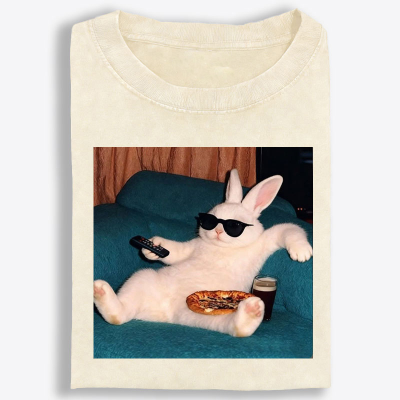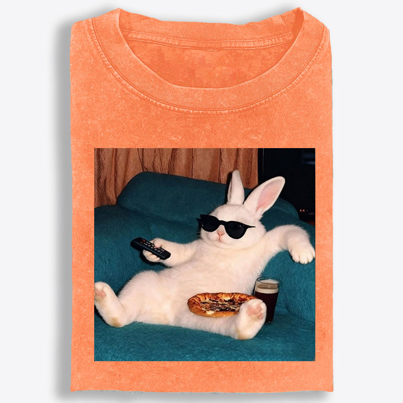 Couch Potato Bunny Retro Washed T-Shirt | 100% Cotton | Streetwear Essential