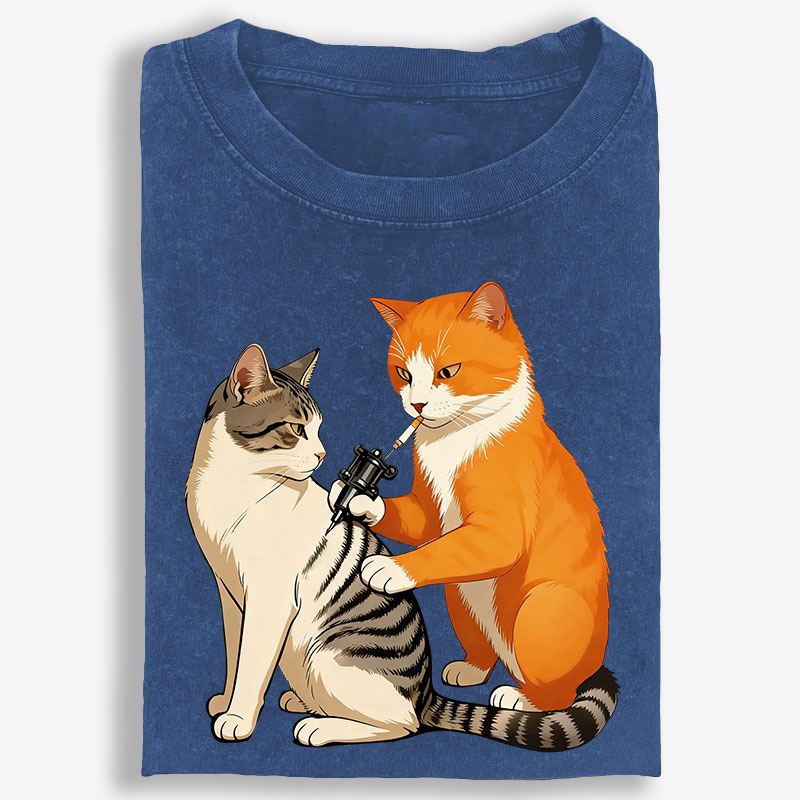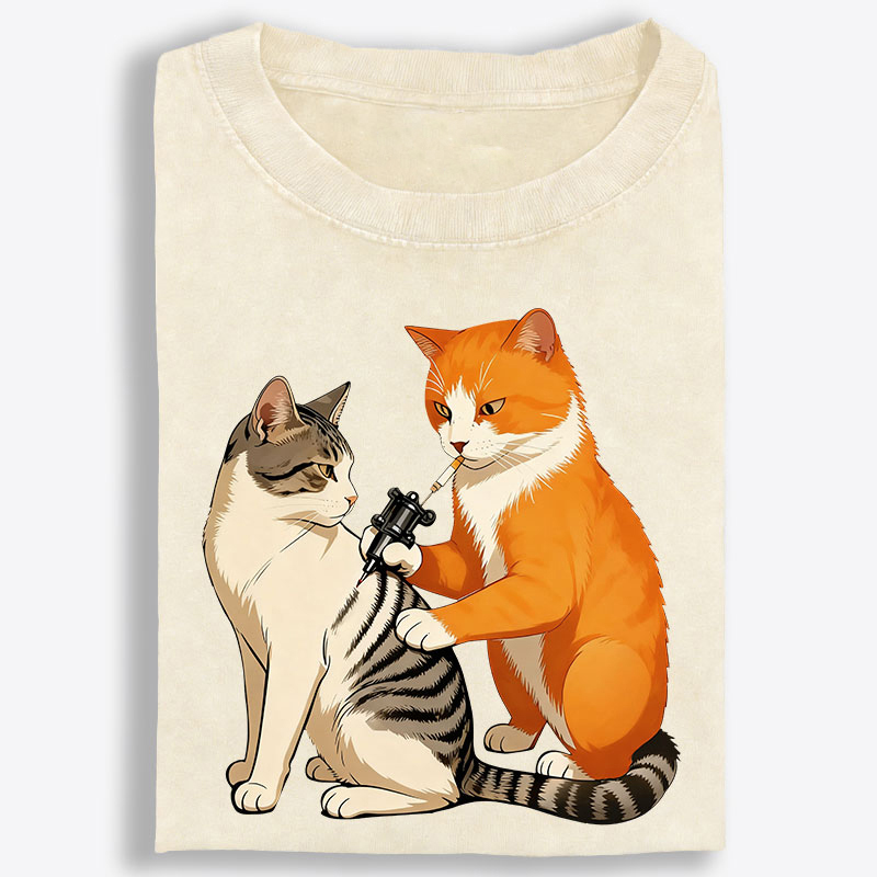 Tattoo Artist Orange Cat Retro Washed T-Shirt | 100% Cotton | Streetwear Essential