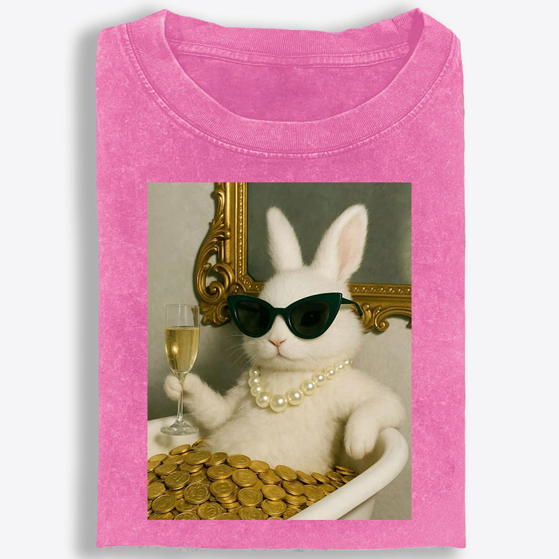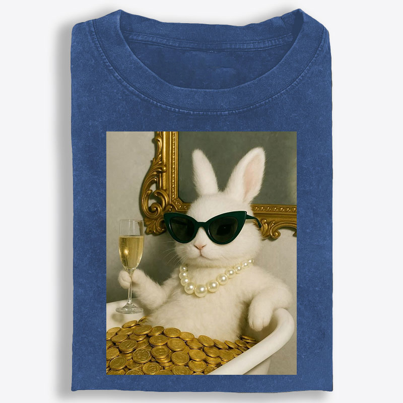 Bathtub Gold Coins Bunny Retro Washed T-Shirt | 100% Cotton | Streetwear Essential