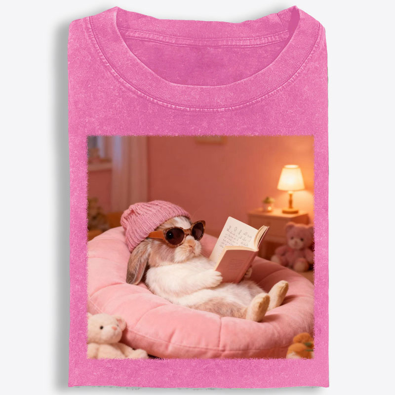 Bunny Bookish Rabbit Retro Washed T-Shirt | 100% Cotton | Streetwear Essential