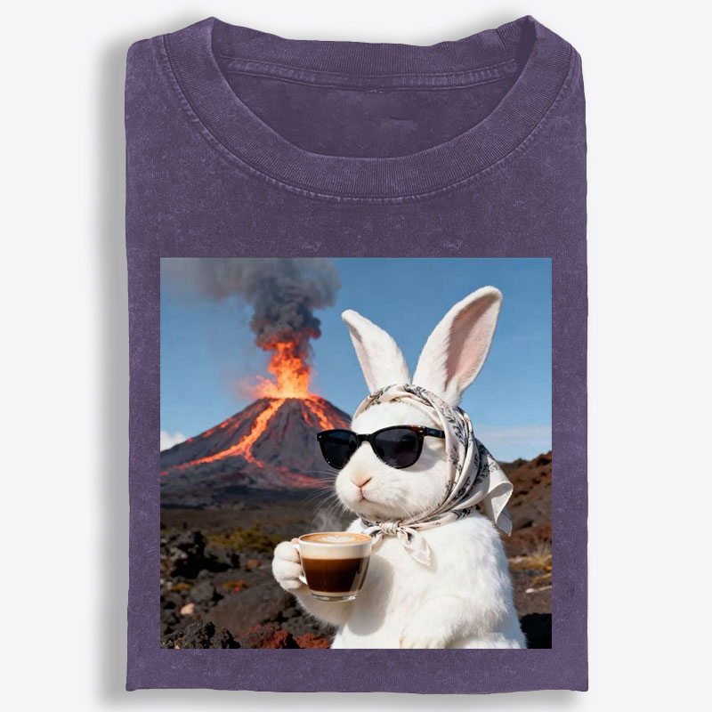 Volcano Coffee Bunny Retro Washed T-Shirt | 100% Cotton | Streetwear Essential