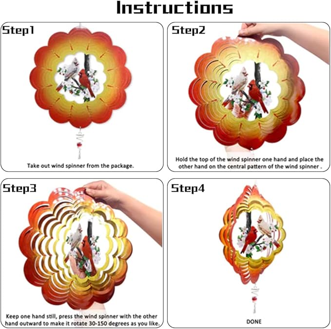 - Wind spinners feature an ingenious metallic construction to absorb much wind force, together with an easy-revolving hook to deliver smooth movement even a weak wind blows.