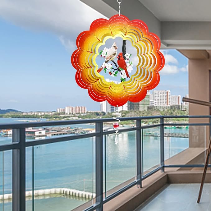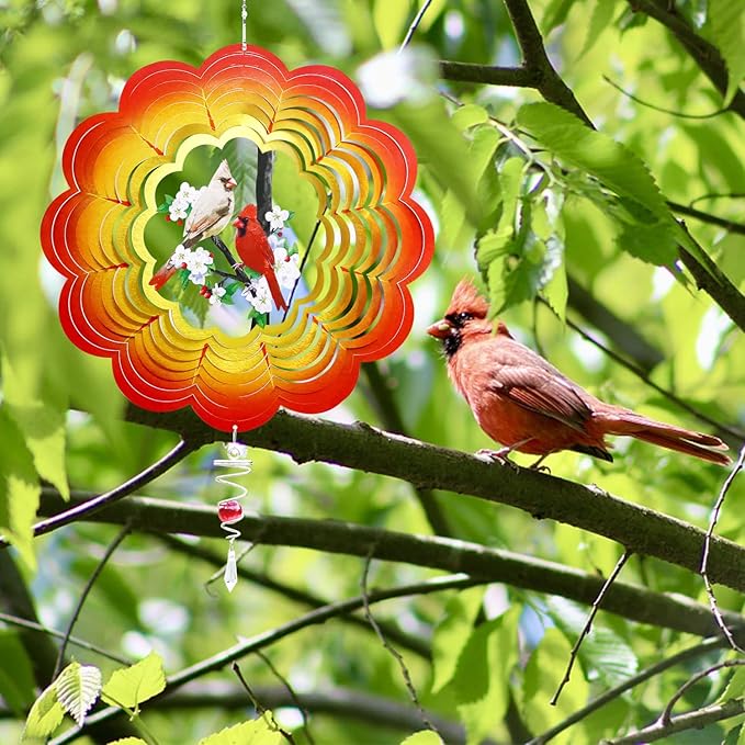 3D Hanging Cardinal Wind Spinner for Yard and Garden Decoration