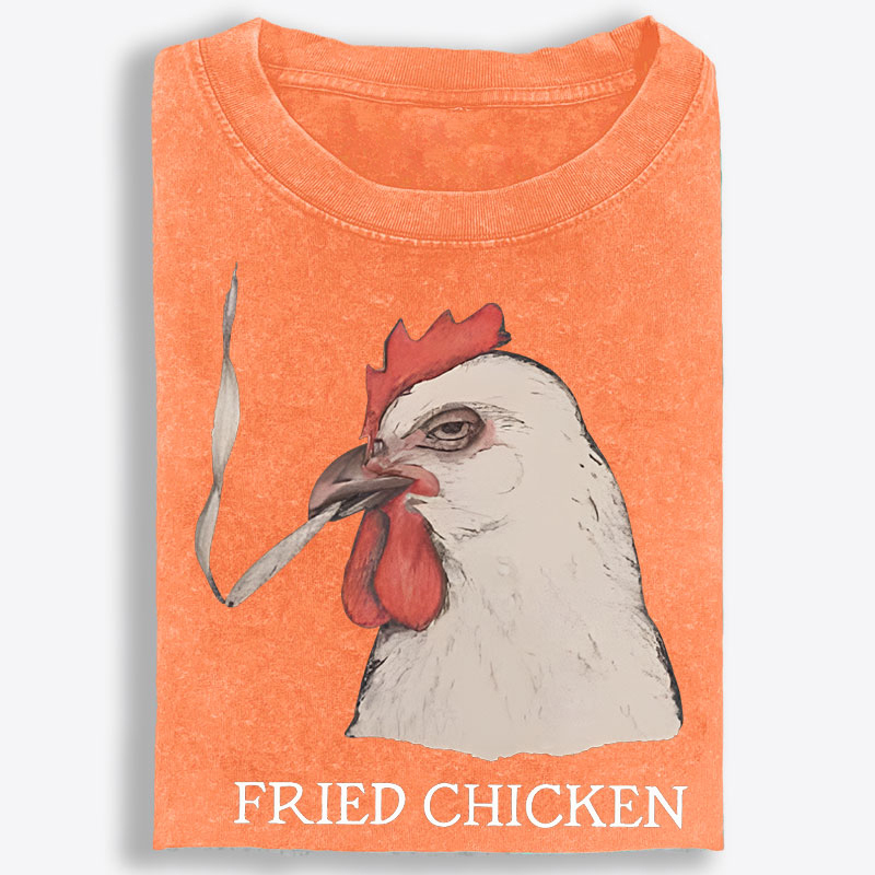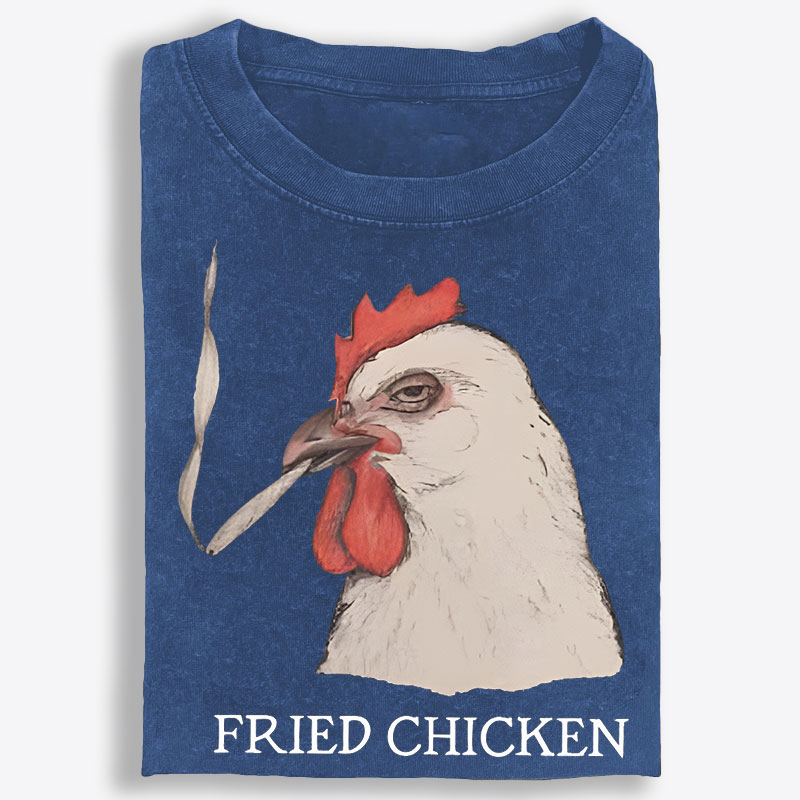 What makes this tee stand out is the graphic. Featuring a darkly funny chicken illustration paired with the bold phrase “Fried Chicken,” this design delivers dry humor, absurd attitude, and offbeat personality in one instantly memorable look. The chicken’s deadpan expression and gritty vintage-inspired artwork give the design an old-school, slightly rebellious feel, while the simple composition keeps all the attention on its unimpressed stare and strange, ironic charm. It is the kind of graphic that feels weird in the best way—perfect for anyone who likes statement tees that are funny, unexpected, and impossible to ignore.