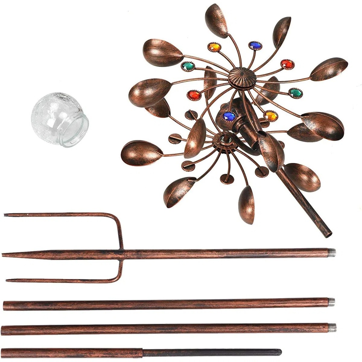 【SOLAR POWERED】:This garden spinner is powered by solar sunlight.At night, the spinner's LED light provides an ambient color changing light display.It is energy saving.Solar galvanized wind spinner offers a fantastic show from every angle.