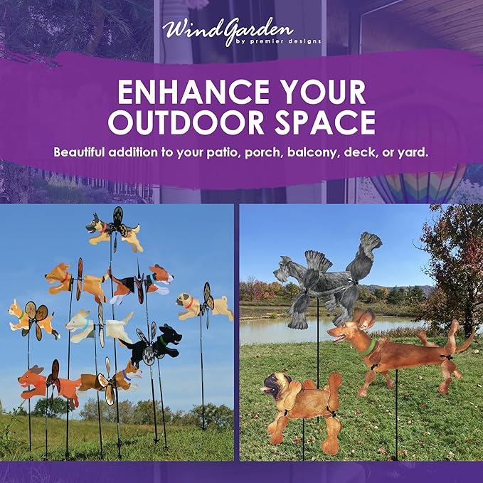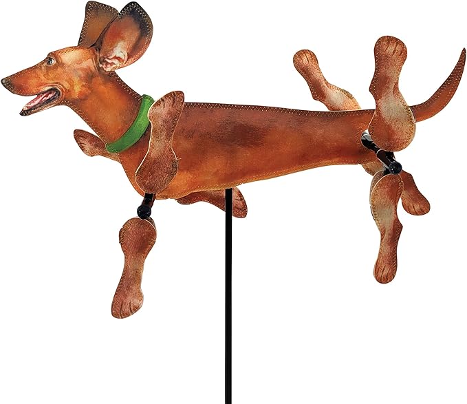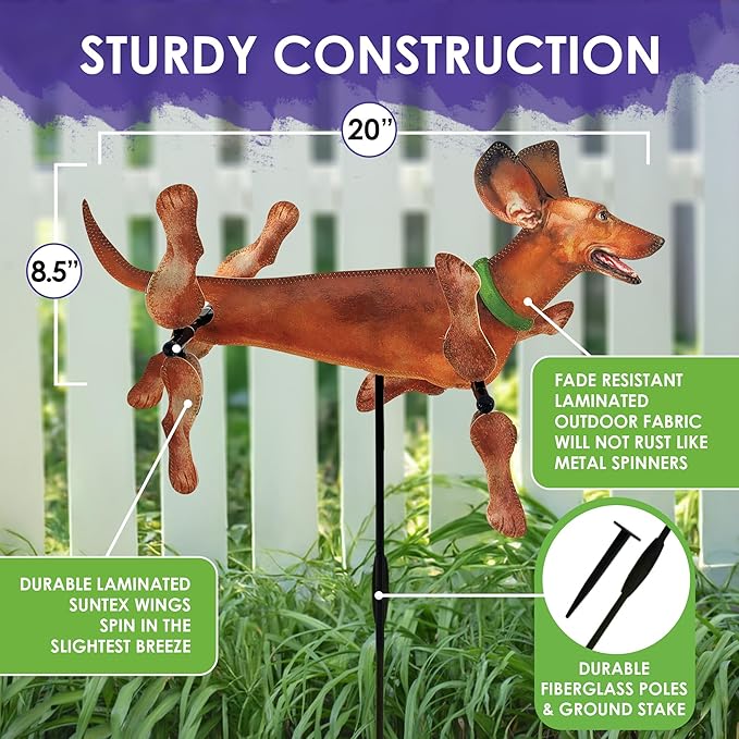 VIBRANT COLORFUL DESIGN – Featuring a charming Dachshund motif with detailed patterns & vibrant colors, this spinner adds playful personality to patios or gardens. Perfect for dog lovers, it brings lively motion & personality to any outdoor space.