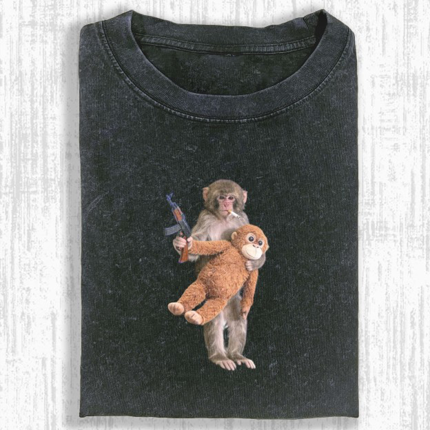 Gangsta Monkey Oversized Washed Vintage Streetwear Meme T-Shirt