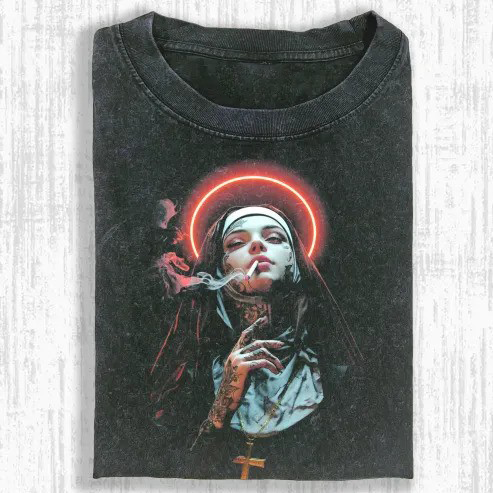 Neon Halo Rebel Nun Oversized Washed T‑Shirt