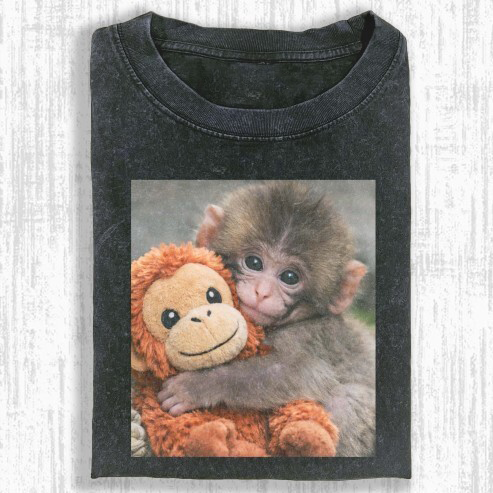 Monkey Family Hug Oversized Washed T‑Shirt