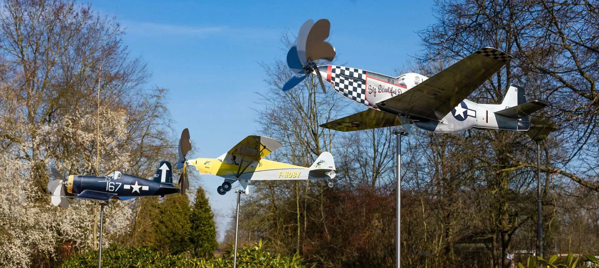 💥 Each airplane model rests elegantly on its slender stand, ready to become the centerpiece of your display. The blurred backdrop of lush greenery adds a touch of natural charm, transporting you to the serenity of a faraway meadow.